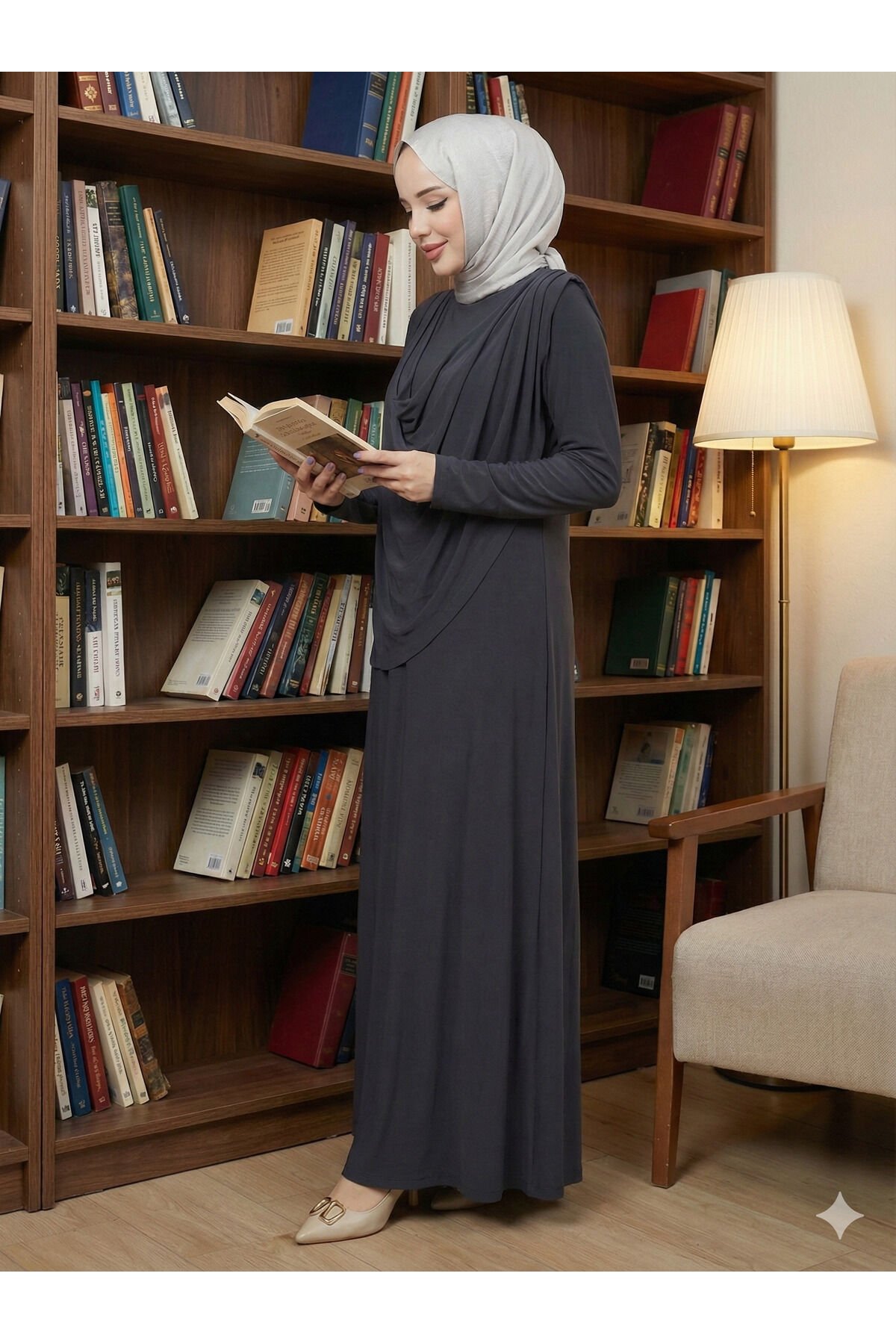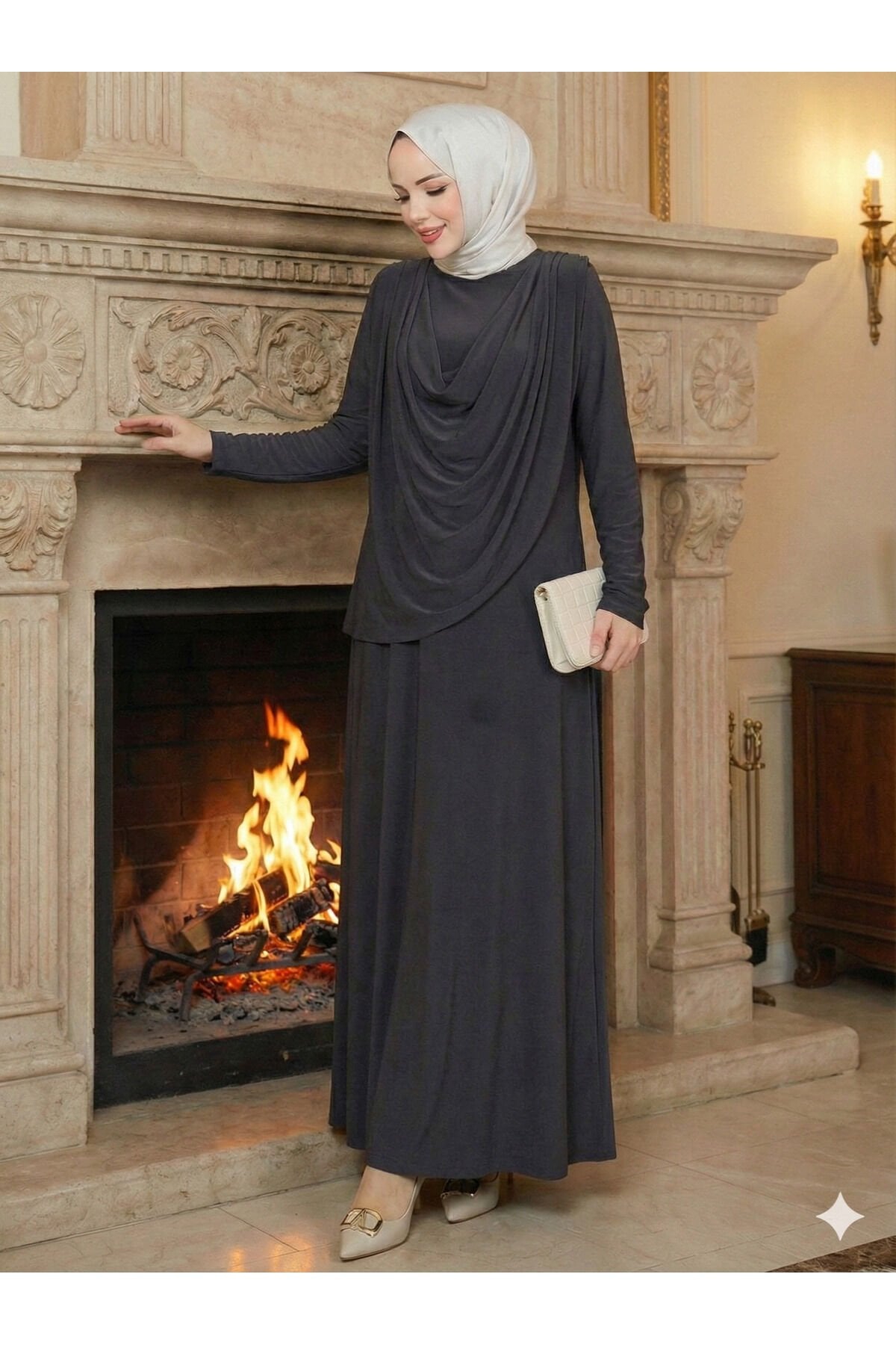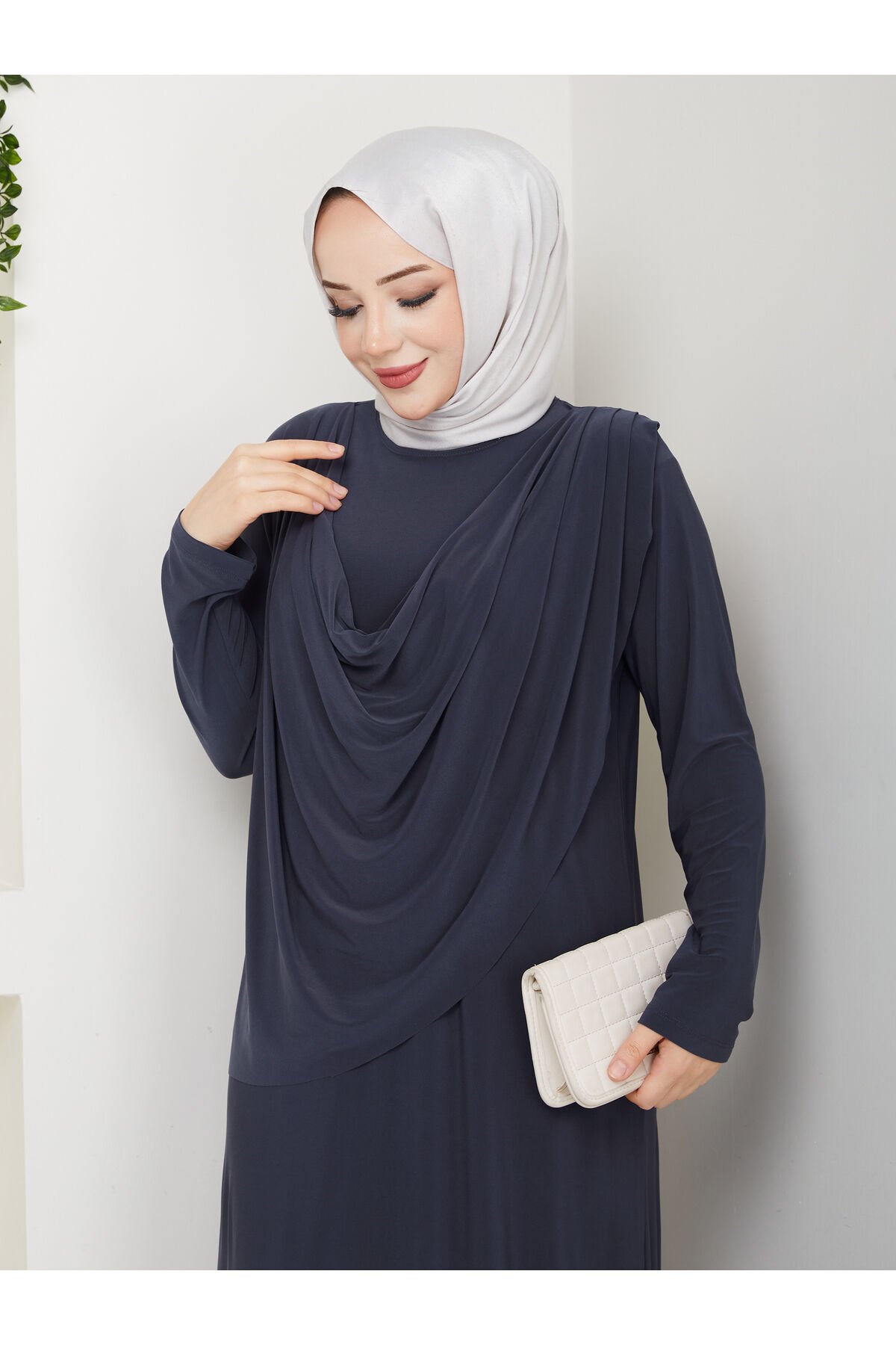 Kadın Sandy Lacivert Önü Degaje Detaylı Tesettür Elbise Füme - 42