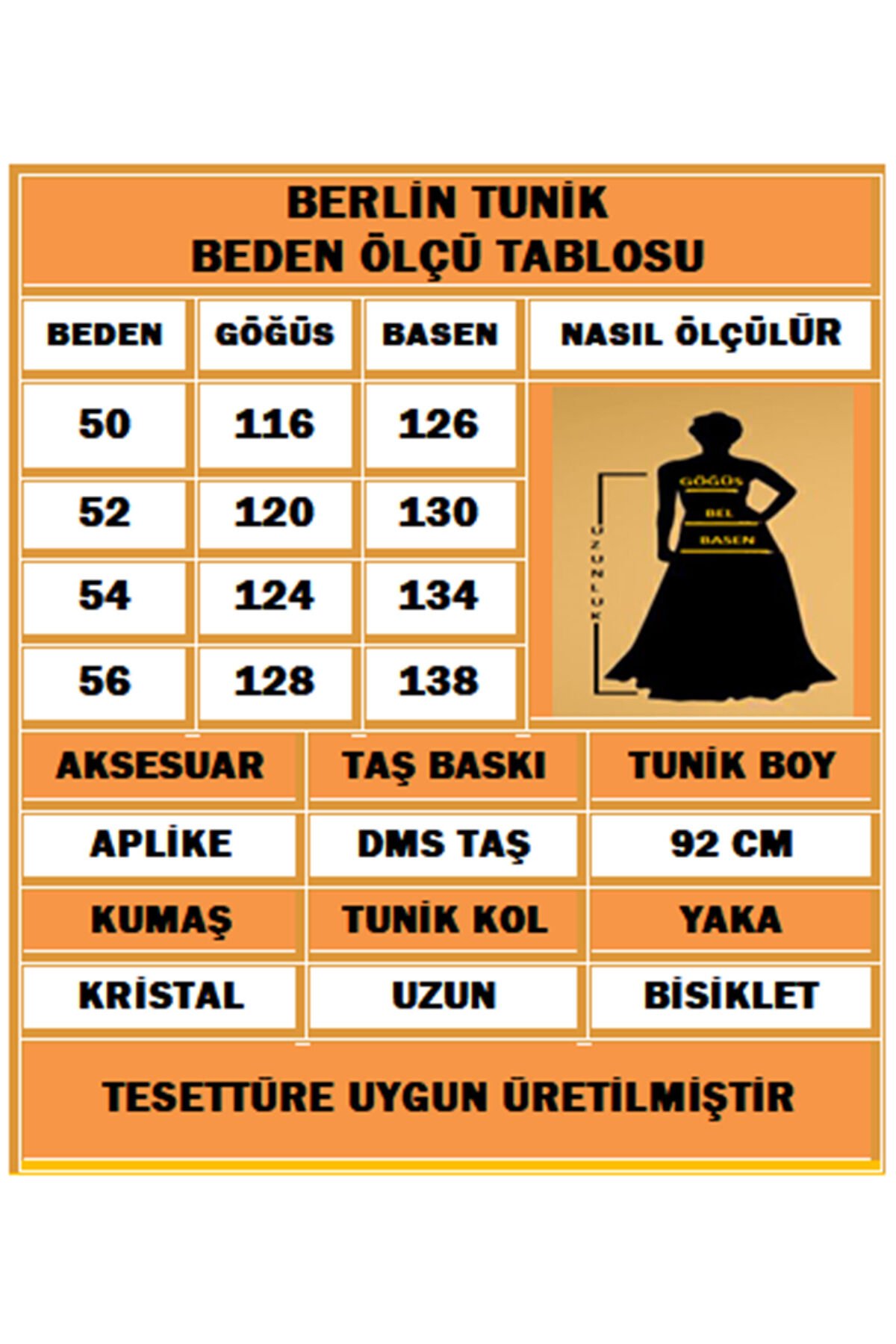 - Kristal kumaş aplike detayları ile göz alıcı bir görünüm sunar.; - İç göstermeyen yapısı sayesinde rahatlıkla tercih edilebilir.; - Yetişkinlerin şıklığına hitap eden modern tasarımıyla dikkat çeker.; - Sürdürülebilir materyaller kullanılarak üretilmiştir, çevre dostu bir seçenektir.; - Bisiklet yaka tasarımı ile sade ve zarif bir duruş sergiler.; - Orta kalınlıkta kumaşı, mevsim geçişlerinde ideal konfor sağlar.; - Tesettür giyim koleksiyonunun parçası olarak, hem şık hem de tesettürlü kadınların tercihi olur.; - Pamuklu materyali ile cildinize nefes aldırırken konforlu bir kullanım sunar.; - 2 iplik dokuma tipi, dayanıklılığı artırarak uzun süreli kullanım vaat eder.; - İlkbahar ve sonbahar sezonlarına uygun olarak tasarlanmıştır; mevsime uygun şıklık için idealdir.; - Uzun kollu tasarım, serin havalarda bile stilinizi korumanız için uygundur.; - Cepsiz tasarım, minimalist ve düzgün hatlara sahip tunik arayanlar için idealdir.; - Düz deseniyle kolay kombinlenebilirlik sağlar; farklı aksesuarlar ile zenginleştirilebilir.; - Regular silueti sayesinde vücut hatlarınıza uyum sağlarken rahat hareket etme özgürlüğü verir.; - Büyük beden kalıbı ile her bedene uygun konforlu bir deneyim sunar.; - Örme kumaş tipi, esneklik ve konforu bir arada sunarak gün boyu rahat etmenizi sağlar.; - Türkiye'de üretilmiş olmasıyla yerel ekonomiye destek olurken kaliteli işçiliğin temsilcisidir.;- Kristal kumaş aplike detayları ile göz alıcı bir görünüm sunar.; - İç göstermeyen yapısı sayesinde rahatlıkla tercih edilebilir.; - Yetişkinlerin şıklığına hitap eden modern tasarımıyla dikkat çeker.; - Sürdürülebilir materyaller kullanılarak üretilmiştir, çevre dostu bir seçenektir.; - Bisiklet yaka tasarımı ile sade ve zarif bir duruş sergiler.; - Orta kalınlıkta kumaşı, mevsim geçişlerinde ideal konfor sağlar.; - Tesettür giyim koleksiyonunun parçası olarak, hem şık hem de tesettürlü kadınların tercihi olur.; - Pamuklu materyali ile cildinize nefes aldırırken konforlu bir kullanım sunar.; - 2 iplik dokuma tipi, dayanıklılığı artırarak uzun süreli kullanım vaat eder.; - İlkbahar ve sonbahar sezonlarına uygun olarak tasarlanmıştır; mevsime uygun şıklık için idealdir.; - Uzun kollu tasarım, serin havalarda bile stilinizi korumanız için uygundur.; - Cepsiz tasarım, minimalist ve düzgün hatlara sahip tunik arayanlar için idealdir.; - Düz deseniyle kolay kombinlenebilirlik sağlar; farklı aksesuarlar ile zenginleştirilebilir.; - Regular silueti sayesinde vücut hatlarınıza uyum sağlarken rahat hareket etme özgürlüğü verir.; - Büyük beden kalıbı ile her bedene uygun konforlu bir deneyim sunar.; - Örme kumaş tipi, esneklik ve konforu bir arada sunarak gün boyu rahat etmenizi sağlar.; - Türkiye'de üretilmiş olmasıyla yerel ekonomiye destek olurken kaliteli işçiliğin temsilcisidir.;