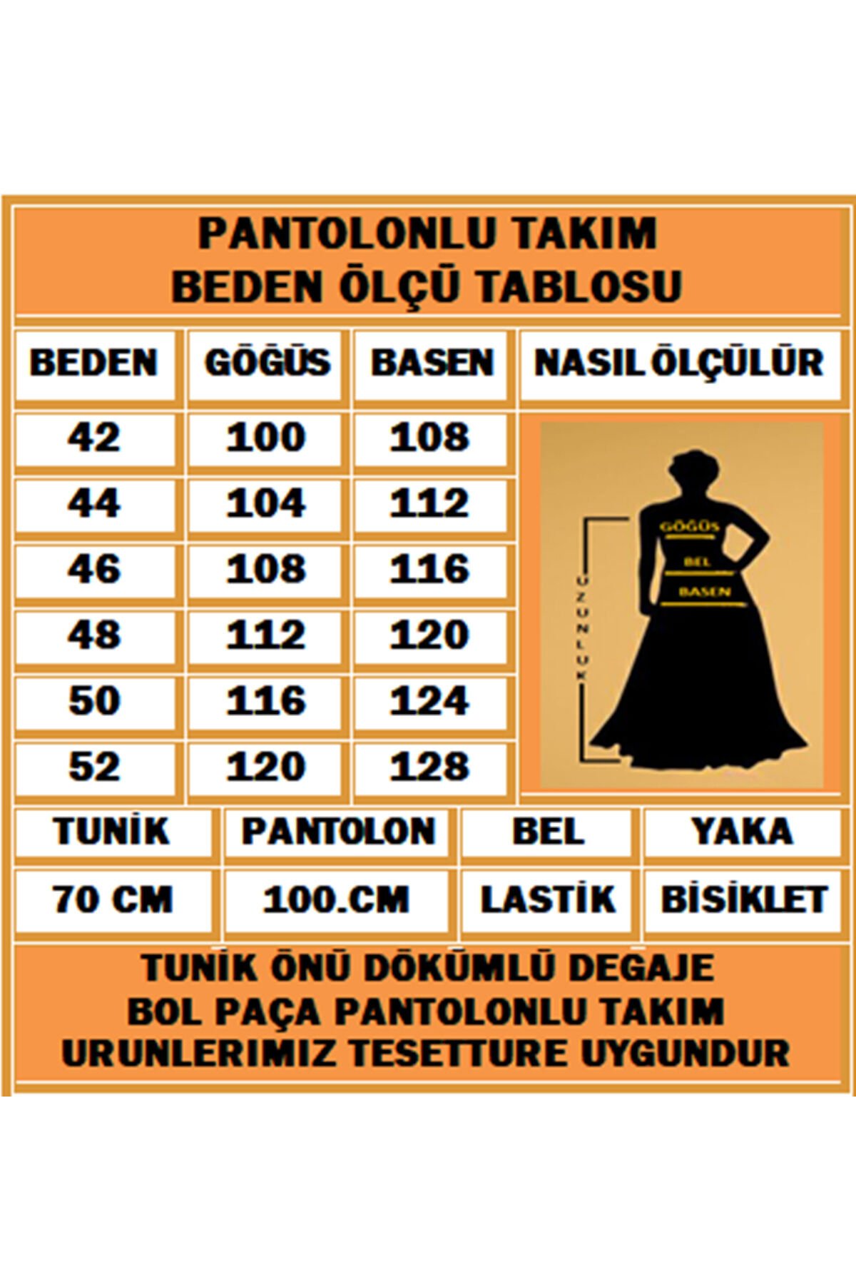 - Yaz aylarının vazgeçilmez parçası olan bu tesettür abiye takımı, hafif ve nefes alabilen viskon karışımlı kumaşıyla konfor sunar.; - Asimetrik kesimi ve bol paça detayları ile modern ve şık bir görünüm sağlar; her adımda zarif bir duruş sergiler.; - Lastikli bel tasarımı sayesinde rahat bir kullanım imkanı tanırken, standart kol tipiyle gün boyu hareket özgürlüğü sunar.; - Kapamasız yapısıyla pratik giyip çıkarma avantajına sahip olup, kırışmaya karşı dayanıklılığı sayesinde bakımı kolaydır.; - Astarsız oluşuyla hafifliği ön planda tutarken, tunikli pantolon kombinasyonu ile hem gündüz hem de gece etkinliklerine uygunluk gösterir.; - 30 derecede makinede veya elde tersten yıkama imkanıyla uzun süreli kullanım için idealdir; böylece sık yıkama gerektirmeyen bir bakım süreci yaşatır.; - Regular kalıp ve ince dokusuyla vücut hatlarınıza uyum sağlayarak rahatlıkla üzerinizde taşıyabileceğiniz bir siluet oluşturur.; - Bisiklet yakası sayesinde sade ama şık bir görünüm kazandırırken, uzun boyuyla bacaklarınızı zarifçe sarar.; - Sandy dokuması yumuşak dokunuşuyla teninizde hoş bir his bırakırken, tunikli pantolonlu alt-üst takım olarak kombinlenebilirliği arttırır.