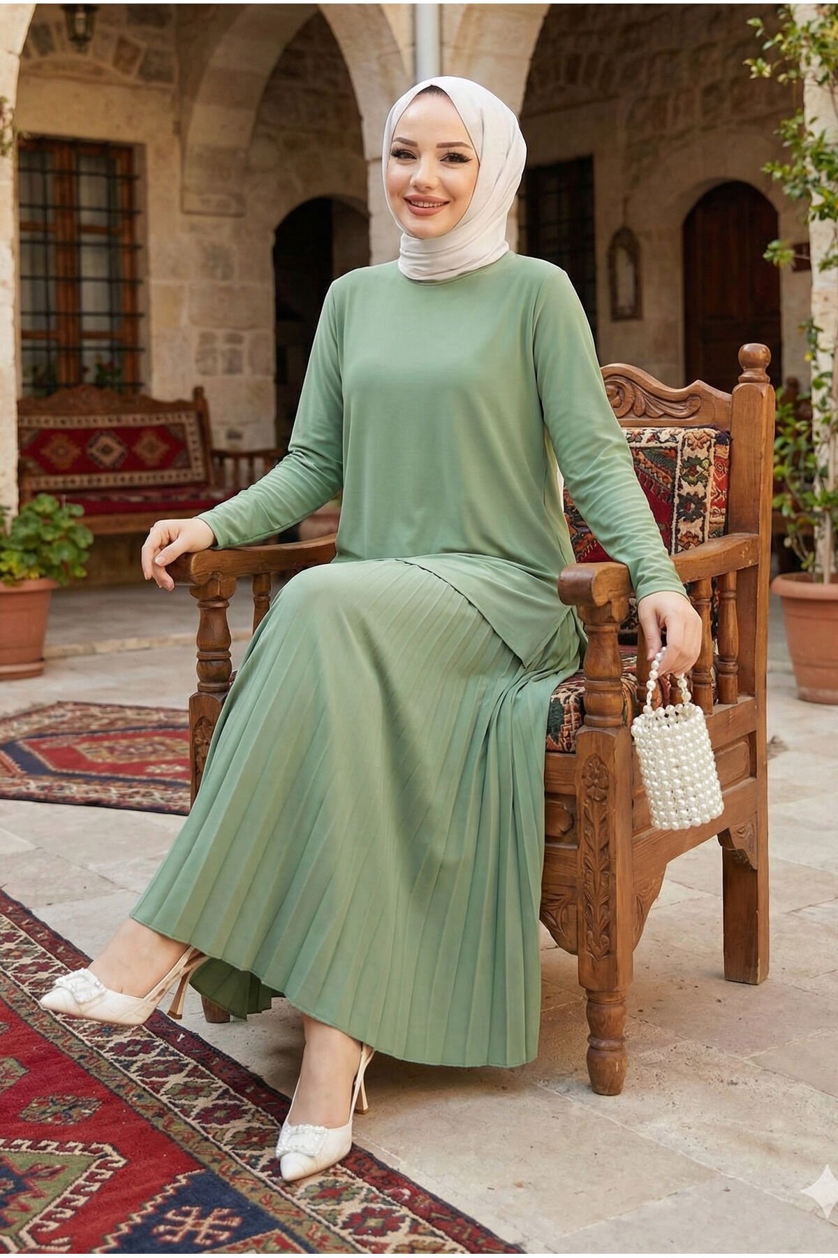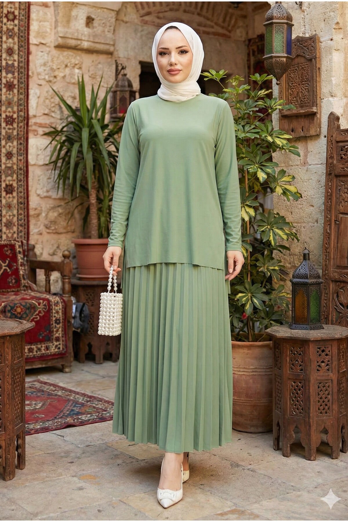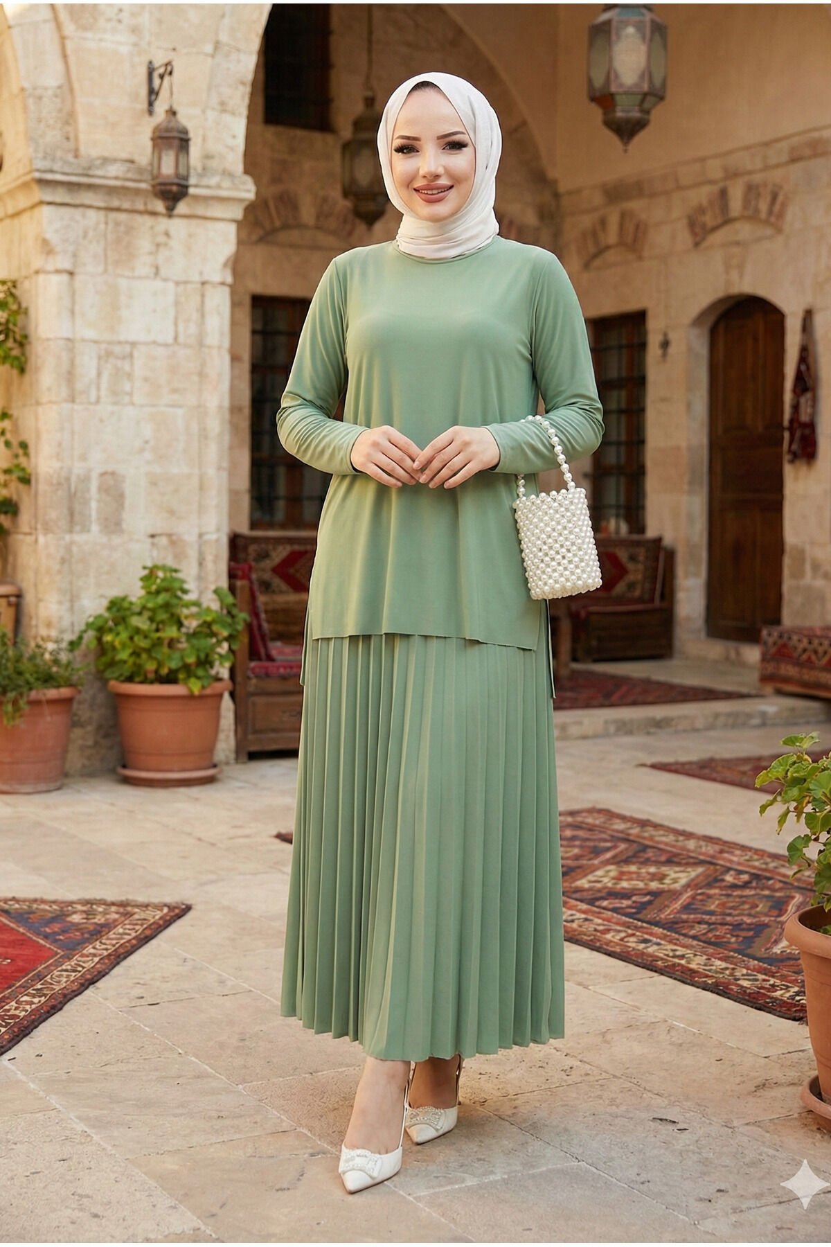 - Rahat kesimi ile günlük kullanım için ideal, büyük beden 2'li bluz etek piliseli tesettür takım.; - Yaz aylarının sıcak günlerinde serin tutan ince viskon karışımlı kumaşıyla konfor sunar.; - Lastikli bel tasarımı sayesinde vücut hatlarınıza mükemmel uyum sağlar ve rahat hareket etmenizi kolaylaştırır.; - Astarsız yapısıyla hafif ve nefes alabilen bir yapıya sahiptir; cilt dostudur.; - Düz deseniyle zamansız bir şıklık sunarken, her türlü aksesuarla kolayca kombinlenebilir.; - Normal bel yüksekliği ile hem şık hem de pratik bir kullanım vaat eder.; - Uzun boy tasarımı sayesinde bacakları olduğundan daha uzun gösterir ve zarif bir siluet çizer.; - Lastikli ek detayları sayesinde giyip çıkarması kolaydır; günlük kullanım için idealdir.; - Günlük ortamlarda rahatlıkla tercih edebileceğiniz bu takım, modaya uygun görünümün yanında konforu da ön planda tutar.; - Modamira tekstil imzasıyla zeytinburnu istanbul'da tasarlanmış ve üretilmiştir; kalite standartlarına sahiptir.; - Bisiklet yakası ile modern ve minimalist bir tarz sunarken, bluz ve etek kombinasyonuyla stil sahibi görünmenizi sağlar.; - Zümrüt yeşili rengiyle dikkat çekici ve canlı bir görünüm kazandırırken, her mevsim tercih edebileceğiniz renk seçeneği sunar.; - Kapamasız yapısı sayesinde basit ama şık bir görünüm elde edersiniz; ekstra aksesuar ihtiyacını ortadan kaldırır.- Rahat kesimi ile günlük kullanım için ideal, büyük beden 2'li bluz etek piliseli tesettür takım.; - Yaz aylarının sıcak günlerinde serin tutan ince viskon karışımlı kumaşıyla konfor sunar.; - Lastikli bel tasarımı sayesinde vücut hatlarınıza mükemmel uyum sağlar ve rahat hareket etmenizi kolaylaştırır.; - Astarsız yapısıyla hafif ve nefes alabilen bir yapıya sahiptir; cilt dostudur.; - Düz deseniyle zamansız bir şıklık sunarken, her türlü aksesuarla kolayca kombinlenebilir.; - Normal bel yüksekliği ile hem şık hem de pratik bir kullanım vaat eder.; - Uzun boy tasarımı sayesinde bacakları olduğundan daha uzun gösterir ve zarif bir siluet çizer.; - Lastikli ek detayları sayesinde giyip çıkarması kolaydır; günlük kullanım için idealdir.; - Günlük ortamlarda rahatlıkla tercih edebileceğiniz bu takım, modaya uygun görünümün yanında konforu da ön planda tutar.; - Modamira tekstil imzasıyla zeytinburnu istanbul'da tasarlanmış ve üretilmiştir; kalite standartlarına sahiptir.; - Bisiklet yakası ile modern ve minimalist bir tarz sunarken, bluz ve etek kombinasyonuyla stil sahibi görünmenizi sağlar.; - Zümrüt yeşili rengiyle dikkat çekici ve canlı bir görünüm kazandırırken, her mevsim tercih edebileceğiniz renk seçeneği sunar.; - Kapamasız yapısı sayesinde basit ama şık bir görünüm elde edersiniz; ekstra aksesuar ihtiyacını ortadan kaldırır.