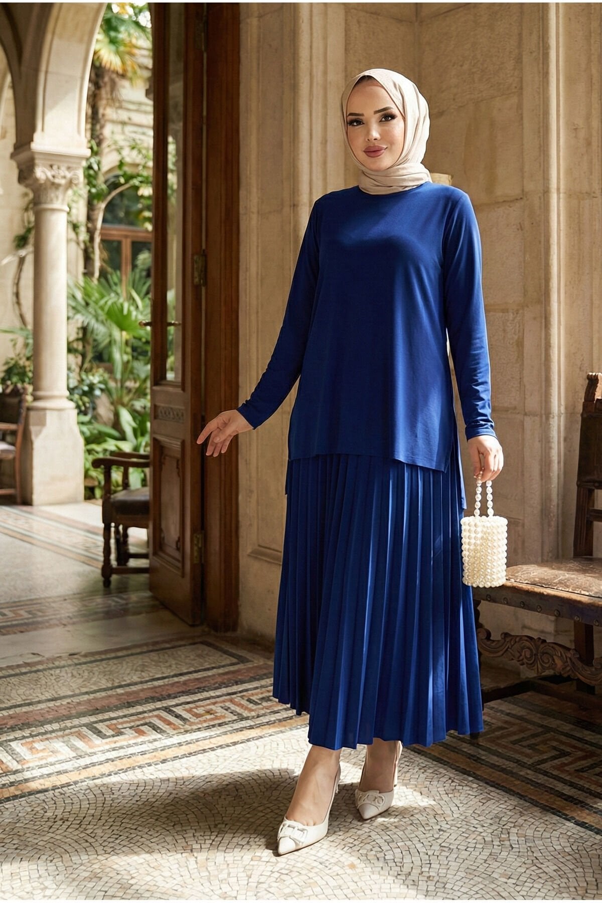 - Rahat kesimi ile günlük kullanım için ideal, büyük beden 2'li bluz etek piliseli tesettür takım.; - Yaz aylarının sıcak günlerinde serin tutan ince viskon karışımlı kumaşıyla konfor sunar.; - Lastikli bel tasarımı sayesinde vücut hatlarınıza mükemmel uyum sağlar ve rahat hareket etmenizi kolaylaştırır.; - Astarsız yapısıyla hafif ve nefes alabilen bir yapıya sahiptir; cilt dostudur.; - Düz deseniyle zamansız bir şıklık sunarken, her türlü aksesuarla kolayca kombinlenebilir.; - Normal bel yüksekliği ile hem şık hem de pratik bir kullanım vaat eder.; - Uzun boy tasarımı sayesinde bacakları olduğundan daha uzun gösterir ve zarif bir siluet çizer.; - Lastikli ek detayları sayesinde giyip çıkarması kolaydır; günlük kullanım için idealdir.; - Günlük ortamlarda rahatlıkla tercih edebileceğiniz bu takım, modaya uygun görünümün yanında konforu da ön planda tutar.; - Modamira tekstil imzasıyla zeytinburnu istanbul'da tasarlanmış ve üretilmiştir; kalite standartlarına sahiptir.; - Bisiklet yakası ile modern ve minimalist bir tarz sunarken, bluz ve etek kombinasyonuyla stil sahibi görünmenizi sağlar.; - Zümrüt yeşili rengiyle dikkat çekici ve canlı bir görünüm kazandırırken, her mevsim tercih edebileceğiniz renk seçeneği sunar.; - Kapamasız yapısı sayesinde basit ama şık bir görünüm elde edersiniz; ekstra aksesuar ihtiyacını ortadan kaldırır.- Rahat kesimi ile günlük kullanıma uygun, tesettür giyim koleksiyonunun şık parçalarından biri olan bu takım, her yaş grubuna hitap eder.; - Uzun boy tasarımı ile modern ve zarif bir görünüm sunan tunik etek ikilisi, yaz aylarında serinlik sağlar.; - Sandy dokuma tipi sayesinde hafif ve nefes alabilen yapıda olan bu takım, konforlu bir deneyim sunar.; - İnce kalınlığı ile mevsim geçişlerinde ideal bir tercih olan bu takım, kolayca kombinlenebilirliğiyle gardırobunuzun vazgeçilmezi olacak.; - Kapamasız tasarımı ve astarsız yapısıyla pratik kullanım imkanı sunan bu takım, günlük aktivitelerinizde size eşlik edecek.; - Beli lastikli detayı sayesinde vücut hatlarınıza mükemmel uyum sağlayarak rahat hareket etmenizi destekler.; - Düz deseniyle sadelikten yana olanların tercihi olan bu takım, farklı aksesuarlarla kolayca kişiselleştirilebilir.; - Günlük ortamlarda şıklığınızdan ödün vermeyerek stil sahibi görünmenizi sağlayan bu takım, her anınıza eşlik edecek.; - Lastikli bel detayına sahip olması sayesinde gün boyu konforlu bir kullanım vaat ederken, standart kol tipiyle de klasikleşmiş tarzınızı korumanızı sağlar.