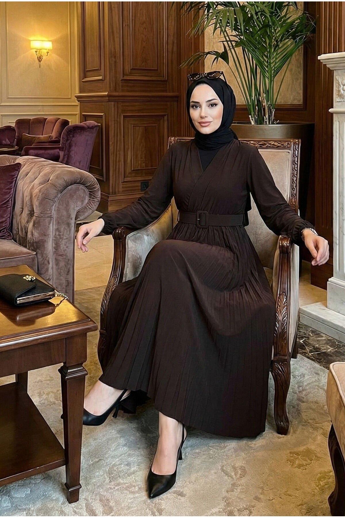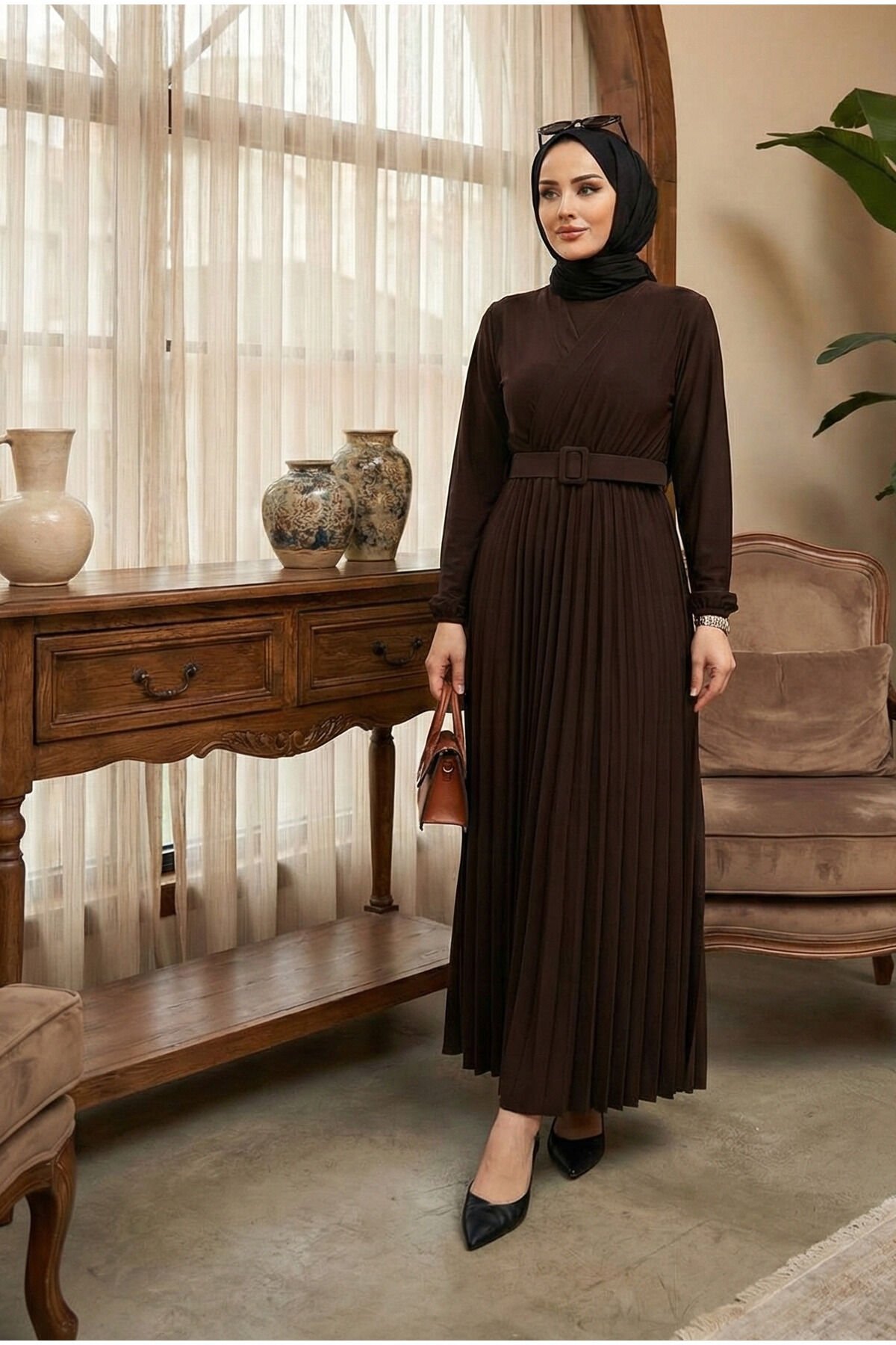- Kruvaze yaka tasarımı ile modern ve şık bir görünüm sunar.; - Viskon likra karışımından oluşan kumaşı, esnekliği ve konforu bir arada sağlar.; - Piliseli detayları ile feminen çizgiler ön plana çıkar.; - Kemer aksesuarı sayesinde bel bölgesini vurgulayan zarif bir siluet oluşturur.; - Tesettür giyim koleksiyonuna özel olarak tasarlanmıştır; hem günlük kullanım hem de özel günler için idealdir.; - Kutusuz ambalajıyla pratik bir şekilde tercih edilebilir; ekstra paketleme maliyetinden tasarruf etmenizi sağlar.; - Cool & comfort persona'ya uygun rahatlıkta tasarlanmıştır; her ortamda kendinizi iyi hissetmenize yardımcı olur.; - Tüm sezonlarda rahatlıkla kullanabileceğiniz çok yönlü bir seçenektir.; - Astarlı olmamasına rağmen hafif iç göstermez; böylece gün boyu rahatlığınızdan ödün vermezsiniz.; - Yetişkin yaş grubuna hitap eden geniş kullanıcı kitlesine sahiptir.; - Sürdürülebilirlik ilkelerine duyarlı üretim süreciyle çevre dostudur.; - Ek özellik bulunmayan bu elbise, sadelikten yana olanların beğenisini kazanır.; - Sandy dokuma tipi sayesinde dayanıklılık ve uzun ömürlülük sunarken aynı zamanda estetik duruşunu korur.; - 30 derecede yıkama imkanı sayesinde kolay bakım avantajlarından faydalanabilirsiniz.; - Paket içeriğindeki tek parça ile ihtiyacınız olan her şeyi tek seferde temin edebilirsiniz.; - Uzun boy kesimiyle bacak hatlarınıza zarifçe oturan şık bir duruş sergiler.; - TR menşeli olmasıyla yerel malzemelerden üretilmiş olup ülke ekonomisine katkıda bulunur.; - Örme kumaş yapısıyla yumuşak dokunuşu cildinize nazikçe temas ederken konforlu bir deneyim vaat eder.; - Regular kalıp seçeneğiyle vücut hatlarınıza uyum sağlayarak rahat hareket etme özgürlüğü tanır.; - Kadın ve kız çocuklarına yönelik tasarlanmış olup herkes tarafından tercih edilebilir.; - Viskon karışımlı materyali sayesinde nefes alabilen yapıda olup yaz ayları için idealdir.; - Uzun kol boyu mevsimsel geçişlerde bile şıklığınızdan ödün vermemenizi sağlar.; - Düz deseniyle sadelikten yana olanların vazgeçilmezi haline gelirken kombin yapmayı da kolaylaştırır.; - Trend ortamlara uygun stil anlayışını yansıtan bu elbise ile modaya ayak uydurabilirsiniz.- Şık kruvaze yaka detayı ile modern ve zarif bir görünüm sunar.; - Sandy dokuma kumaşı, hafif ve nefes alabilen yapısıyla gün boyu konfor sağlar.; - Uzun kollu tasarımı ile mevsim geçişlerinde ideal koruma sunar.; - Düz bordo rengi, kolay kombinlenebilirlik ve zamansız bir stil yaratır.; - Uzun boyu ile hem şıklığı hem de tesettür giyim standartlarına uygunluğu bir arada sunar.; - Piliseli eteği, hareket özgürlüğü sağlarken feminen bir dokunuş katar.; - Regular kalıp, rahat bir kullanım imkanı sunarken vücut hatlarını nazikçe sarar.; - Kemer detayı belinizi vurgulayarak daha feminen bir siluet oluşturur.; - Örme kumaş tipi, esneklik ve dayanıklılık sunarak uzun süreli kullanım vaat eder.; - İç göstermeyen yapısı sayesinde rahatlıkla tercih edilebilir.; - Tesettür giyim koleksiyonuna özel olarak tasarlanmıştır, şıklığı ve rahatlığı bir arada sunar.; - Cool & Comfort persona'sı ile günlük kullanım için idealdir; hem rahat hem de trend bir görünüm sağlar.; - Sürdürülebilirlik detayına sahip olması, çevre dostu bir tercih yapmanızı sağlar.; - 30 derecede yıkama talimatına uygun olması kolay bakım imkanı sunar.; - Tüm sezonlar için uygun tasarımıyla yılın her döneminde tercih edilebilir.