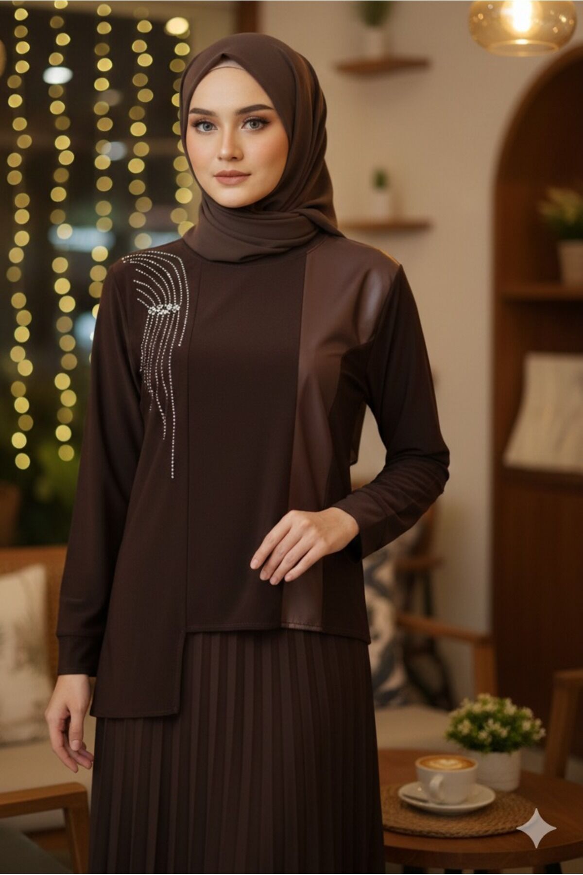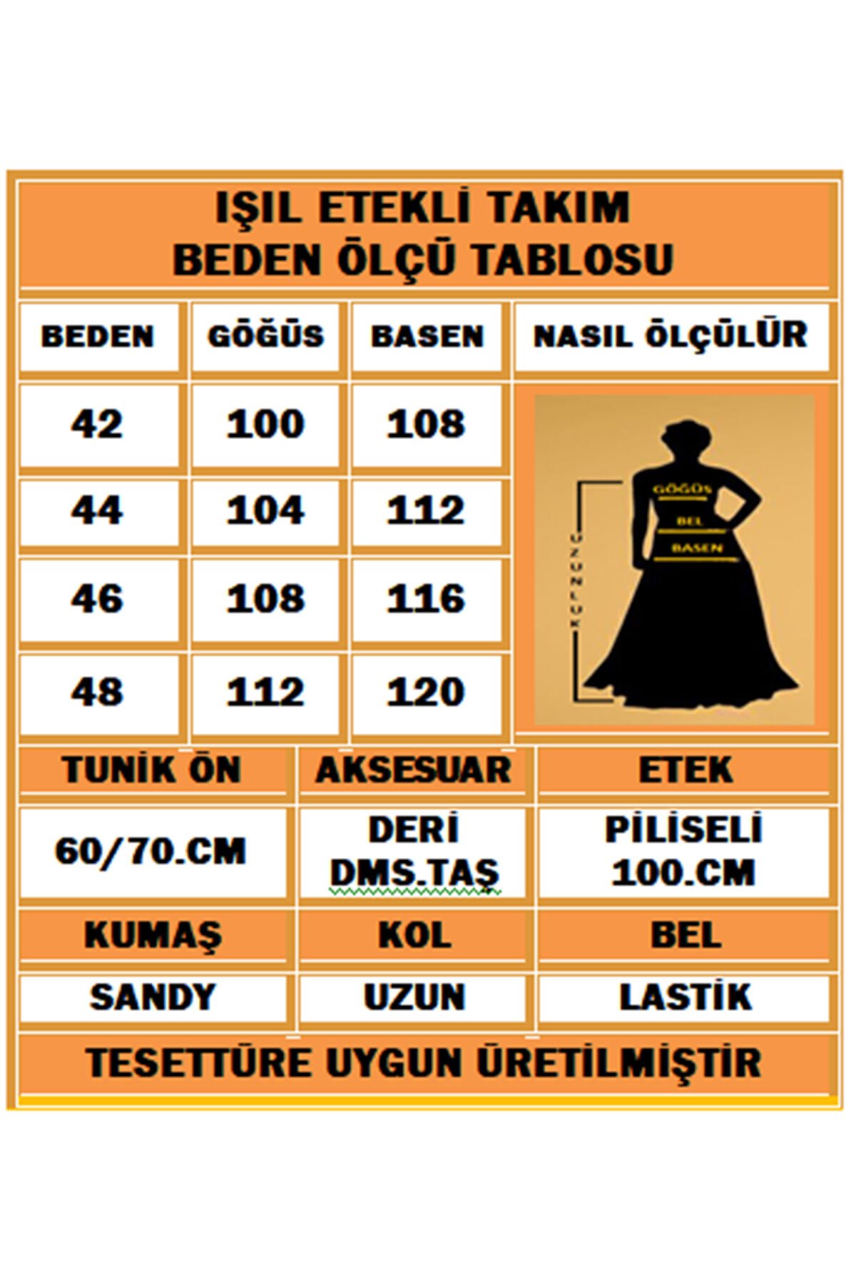 - Şık ve modern tasarımıyla her ortamda dikkat çeken, kadınlar için özel olarak tasarlanmış bluzlu etekli takım.; - Sandy kumaşın sunduğu yumuşak dokusuyla gün boyu konforlu bir kullanım sunar.; - Lastikli bel tasarımı sayesinde rahat bir oturuş sağlar ve vücut hatlarını nazikçe sarar.; - Ön kısmındaki deri detaylar ve taş baskılarla zenginleştirilmiş, göz alıcı bir görünüm kazandırır.; - Standart kol ve bisiklet yaka kesimiyle klasik ve zamansız bir stil oluşturur.; - Piliseli etek tasarımı ile feminen silueti ön plana çıkarırken, kloş kesim sayesinde hareket özgürlüğü sağlar.; - Tesettür giyim koleksiyonuna uygun olarak tasarlanmış olup, her mevsim rahatlıkla tercih edilebilir.; - 2'li paket içeriğiyle hem bluz hem de etek birlikte sunulur; kolay kombin imkanı sağlar.; - Örme kumaş tipi sayesinde esneklik ve dayanıklılık sunar; kırışmaya karşı dirençlidir.; - Sürdürülebilirlik detayına sahip olmasıyla çevre dostu bir seçimdir.;- Şık ve modern tasarımıyla her ortamda dikkat çeken, kadınlar için özel olarak tasarlanmış bluzlu etekli takım.; - Sandy kumaşın sunduğu yumuşak dokusuyla gün boyu konforlu bir kullanım sunar.; - Lastikli bel tasarımı sayesinde rahat bir oturuş sağlar ve vücut hatlarını nazikçe sarar.; - Ön kısmındaki deri detaylar ve taş baskılarla zenginleştirilmiş, göz alıcı bir görünüm kazandırır.; - Standart kol ve bisiklet yaka kesimiyle klasik ve zamansız bir stil oluşturur.; - Piliseli etek tasarımı ile feminen silueti ön plana çıkarırken, kloş kesim sayesinde hareket özgürlüğü sağlar.; - Tesettür giyim koleksiyonuna uygun olarak tasarlanmış olup, her mevsim rahatlıkla tercih edilebilir.; - 2'li paket içeriğiyle hem bluz hem de etek birlikte sunulur; kolay kombin imkanı sağlar.; - Örme kumaş tipi sayesinde esneklik ve dayanıklılık sunar; kırışmaya karşı dirençlidir.; - Sürdürülebilirlik detayına sahip olmasıyla çevre dostu bir seçimdir.;
