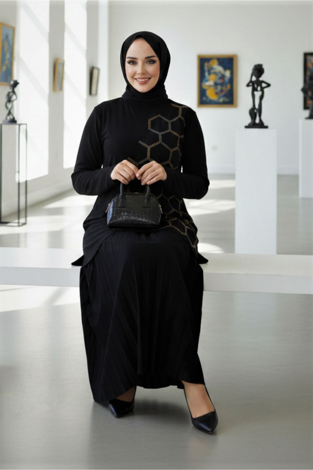 - Rahat kesimi ile büyük beden tercihleri için ideal olan bu takım, her vücut tipine uyum sağlar.; - Uzun boyu sayesinde şık ve zarif bir görünüm sunarken, piliseli detaylarıyla hareket kazandırır.; - Taş baskı deseniyle modern ve estetik bir dokunuş eklerken, düz tasarımıyla kolay kombin imkanı sunar.; - Astarsız yapısıyla hafiflik hissi verirken, yaz aylarında serin tutan ince viskon karışımlı materyaliyle konfor sağlar.; - Yüksek bel tasarımı sayesinde vücut hatlarını zarifçe sararak feminen bir siluet oluşturur.; - Uzun kol boyu ve cepsiz yapısı ile pratik kullanım sunarken, bluzlu etekli kombiniyle günlük şıklığı tamamlar.; - Paçasız paça tipi modern bir görünüm sergilerken, standart kol yapısı rahat hareket etme özgürlüğü tanır.; - Viskon karışımlı materyali sayesinde esneklik kazanan bu takım, gün boyu rahatlık sağlar.; - 30 derecede yıkama talimatına uygun şekilde kolayca temizlenebilir; böylece uzun süre ilk günkü gibi kullanabilirsiniz.; - Yetişkin yaş grubuna hitap eden bu ürün, casual ortamlarda günlük kullanım için uygundur.; - Kutusuz paket içeriği ile minimalist bir tercih sunarken, 2'li set halinde gelmesi ekonomik avantaj sağlar.; - Kapamasız tasarımı sayesinde pratik giyilip çıkartılabilme avantajına sahip olan bu takım, cool & comfort persona'ya sahiptir.; - Kırışmaya dayanıklı dokusuyla bakımı kolaydır; böylece gün içinde zamandan tasarruf edebilirsiniz.; - Tesettür giyim koleksiyonuna özel olarak tasarlanmış bu parça, kahve renginin asaletini yansıtan zarif detaylarıyla dikkat çeker.- Rahat kesimi ile büyük beden kadınların günlük kullanımına uygun, yüksek bel tasarımı sayesinde konforlu bir deneyim sunar.; - Taş detaylı eteği piliseli yapısıyla şıklığı ve zarafeti ön plana çıkartırken, düz deseniyle kolayca kombinlenebilirliği artırır.; - Astarsız yapısıyla hafif ve nefes alabilen bir kullanım sağlar; yaz aylarında serin tutar.; - Uzun boyu sayesinde tesettür giyim standartlarına uygunluk gösterirken, bluzlu etekli ikili takım olarak kombinlenebilirliği kolaylaştırır.; - İnce yapısıyla mevsim geçişlerinde ideal bir tercih olup, standart kol tipiyle rahat hareket etme özgürlüğü sunar.; - Cepsiz tasarımı modern bir görünüm kazandırırken, siyah rengi her zaman moda olan zamansız bir seçenektir.; - Viskon karışımlı materyali yumuşak dokusuyla cildinize nazikçe dokunurken dayanıklılığı arttırır.; - 30 derecede makinede veya elle tersten yıkama imkanıyla bakımı kolaydır; böylece ürününüz uzun süre ilk günkü gibi kalır.; - Yetişkin yaş grubuna hitap eden bu takım, casual ortamlarda rahatlıkla tercih edilebilir.; - Modamira tekstil giyim imalat satış zeytinburnu istanbul adresinden tedarik edilebilen bu ürün, Türkiye'de üretilmiştir.; - Bisiklet yakası ile modern çizgiler taşıyan bu bluzlu etekli ikili takım, cool & comfort persona'ya sahip kadınların gardrobunda yerini almayı hak ediyor.; - Kapamasız oluşu pratik kullanım imkanları sunarken kırışmaya dayanıklı özelliği sayesinde gün boyu şık görünmenizi sağlar.; - İki parçadan oluşan set içeriğiyle hem bütçe dostu hem de stil sahibi bir görünüm elde etmenize olanak tanır.; - Sandy dokuma tipinin verdiği parlaklıkla göz alıcı detaylara sahip olan bu takım, tesettür giyim koleksiyonunuz için idealdir.; - Kırışmaya dayanıklı materyali sayesinde uzun süreli kullanım vaat eder; böylece sık yıkama gerektirmeyen bir yapıya sahiptir.