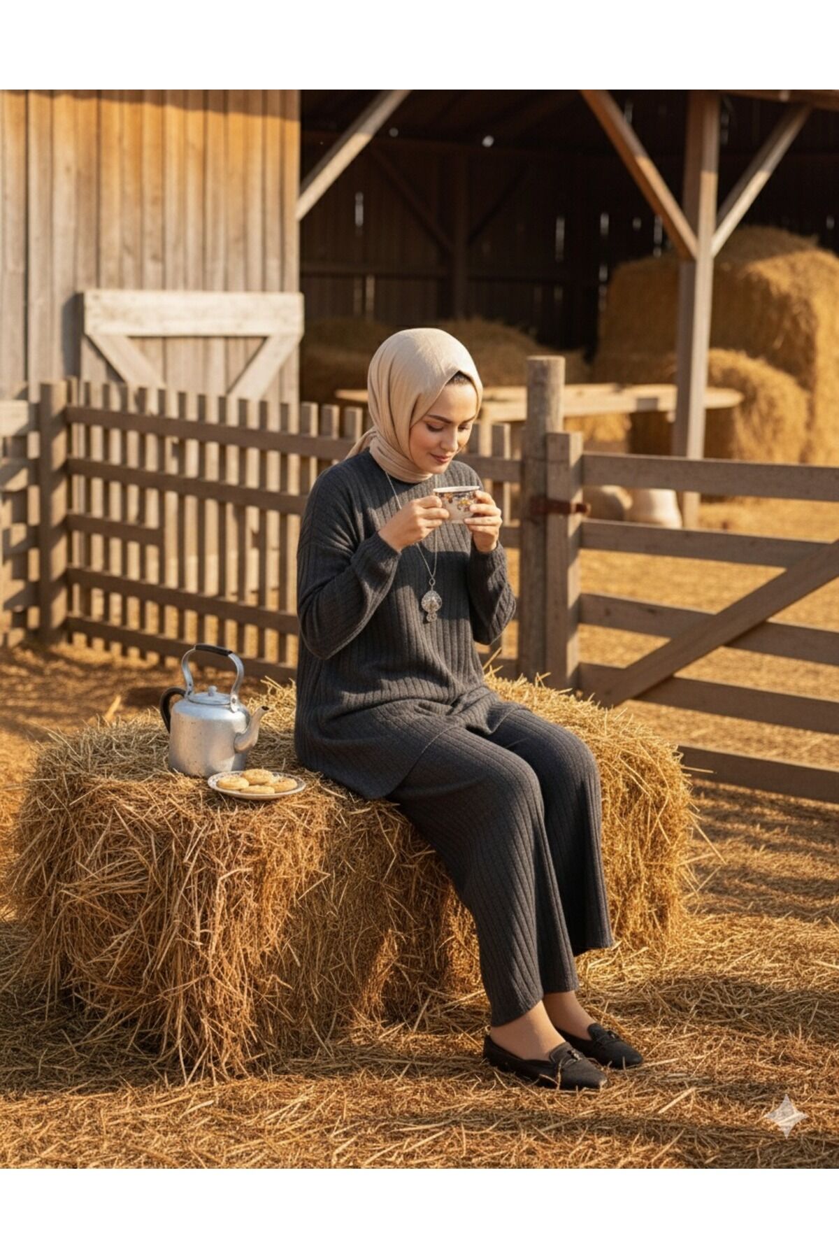 - Sandy dokuma tipi ile üretilmiş, ince ve hafif yapısıyla her mevsim rahatlıkla tercih edilebilen bir takım.; - Casual ve günlük kullanım için ideal, düz deseniyle sade ve şık bir görünüm sunar.; - Kapamasız tasarımı sayesinde kolay giyilip çıkarılabilir; bisiklet yaka detayı ile modern bir stil oluşturur.; - Uzun kollu ve bol paça kesimiyle rahat hareket etme özgürlüğü sağlar; regular siluetiyle vücut hatlarını nazikçe sarar.; - Piliseli detayları ile feminen dokunuşlar eklerken, lastikli bel tasarımı konforlu bir kullanım sunar.; - Tesettür giyim koleksiyonuna uygun olarak tasarlanmıştır; kemersiz ve cepli yapısıyla minimalist bir estetik sergiler.; - Sürdürülebilirlik detaylarına sahip olup, çevre dostu tercihler arasında yer alır.; - Yetişkin kadınlar için uygun olan bu takım, cool & comfort persona ile günlük şıklığınızı tamamlar.; - Standart kol tipi ve uzun boyu ile farklı vücut tiplerine uyum sağlar.; - Türkiye'de üretilmiş olup, yerel üretim desteklenerek ekonomik katkıda bulunulur.; - Relaxed kalıbı sayesinde rahatlığı ön pl- Sandy dokuma tipi ile üretilmiş, ince ve hafif yapısıyla her mevsim rahatlıkla tercih edilebilen bir takım.; - Casual ve günlük kullanım için ideal, düz deseniyle sade ve şık bir görünüm sunar.; - Kapamasız tasarımı sayesinde kolay giyilip çıkarılabilir; bisiklet yaka detayı ile modern bir stil oluşturur.; - Uzun kollu ve bol paça kesimiyle rahat hareket etme özgürlüğü sağlar; regular siluetiyle vücut hatlarını nazikçe sarar.; - Piliseli detayları ile feminen dokunuşlar eklerken, lastikli bel tasarımı konforlu bir kullanım sunar.; - Tesettür giyim koleksiyonuna uygun olarak tasarlanmıştır; kemersiz ve cepli yapısıyla minimalist bir estetik sergiler.; - Sürdürülebilirlik detaylarına sahip olup, çevre dostu tercihler arasında yer alır.; - Yetişkin kadınlar için uygun olan bu takım, cool & comfort persona ile günlük şıklığınızı tamamlar.; - Standart kol tipi ve uzun boyu ile farklı vücut tiplerine uyum sağlar.; - Türkiye'de üretilmiş olup, yerel üretim desteklenerek ekonomik katkıda bulunulur.; - Relaxed kalıbı sayesinde rahatlığı ön pl