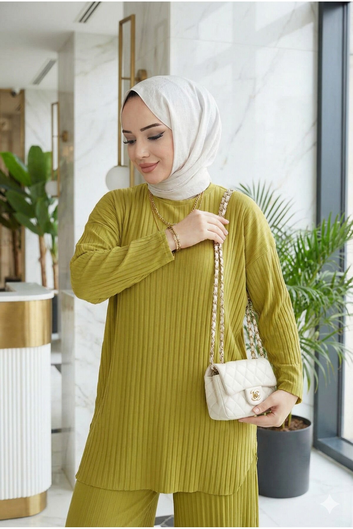 - Sandy dokuma tipi ile üretilmiş, ince ve hafif yapısıyla her mevsim rahatlıkla tercih edilebilen bir takım.; - Casual ve günlük kullanım için ideal, düz deseniyle sade ve şık bir görünüm sunar.; - Kapamasız tasarımı sayesinde kolay giyilip çıkarılabilir; bisiklet yaka detayı ile modern bir stil oluşturur.; - Uzun kollu ve bol paça kesimiyle rahat hareket etme özgürlüğü sağlar; regular siluetiyle vücut hatlarını nazikçe sarar.; - Piliseli detayları ile feminen dokunuşlar eklerken, lastikli bel tasarımı konforlu bir kullanım sunar.; - Tesettür giyim koleksiyonuna uygun olarak tasarlanmıştır; kemersiz ve cepli yapısıyla minimalist bir estetik sergiler.; - Sürdürülebilirlik detaylarına sahip olup, çevre dostu tercihler arasında yer alır.; - Yetişkin kadınlar için uygun olan bu takım, cool & comfort persona ile günlük şıklığınızı tamamlar.; - Standart kol tipi ve uzun boyu ile farklı vücut tiplerine uyum sağlar.; - Türkiye'de üretilmiş olup, yerel üretim desteklenerek ekonomik katkıda bulunulur.; - Relaxed kalıbı sayesinde rahatlığı ön pl- Sandy dokuma tipi ile üretilmiş, ince ve hafif yapısıyla her mevsim rahatlıkla tercih edilebilen bir takım.; - Casual ve günlük kullanım için ideal, düz deseniyle sade ve şık bir görünüm sunar.; - Kapamasız tasarımı sayesinde kolay giyilip çıkarılabilir; bisiklet yaka detayı ile modern bir stil oluşturur.; - Uzun kollu ve bol paça kesimiyle rahat hareket etme özgürlüğü sağlar; regular siluetiyle vücut hatlarını nazikçe sarar.; - Piliseli detayları ile feminen dokunuşlar eklerken, lastikli bel tasarımı konforlu bir kullanım sunar.; - Tesettür giyim koleksiyonuna uygun olarak tasarlanmıştır; kemersiz ve cepli yapısıyla minimalist bir estetik sergiler.; - Sürdürülebilirlik detaylarına sahip olup, çevre dostu tercihler arasında yer alır.; - Yetişkin kadınlar için uygun olan bu takım, cool & comfort persona ile günlük şıklığınızı tamamlar.; - Standart kol tipi ve uzun boyu ile farklı vücut tiplerine uyum sağlar.; - Türkiye'de üretilmiş olup, yerel üretim desteklenerek ekonomik katkıda bulunulur.; - Relaxed kalıbı sayesinde rahatlığı ön pl