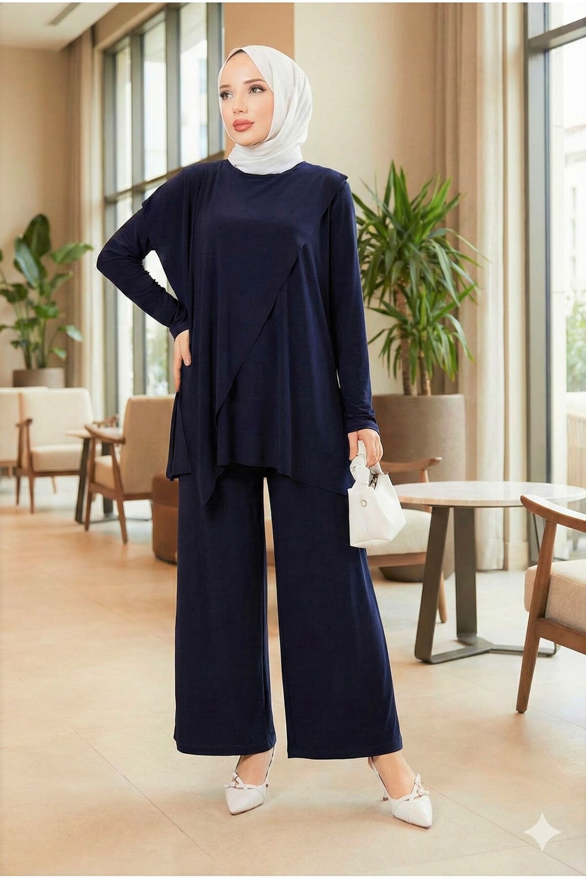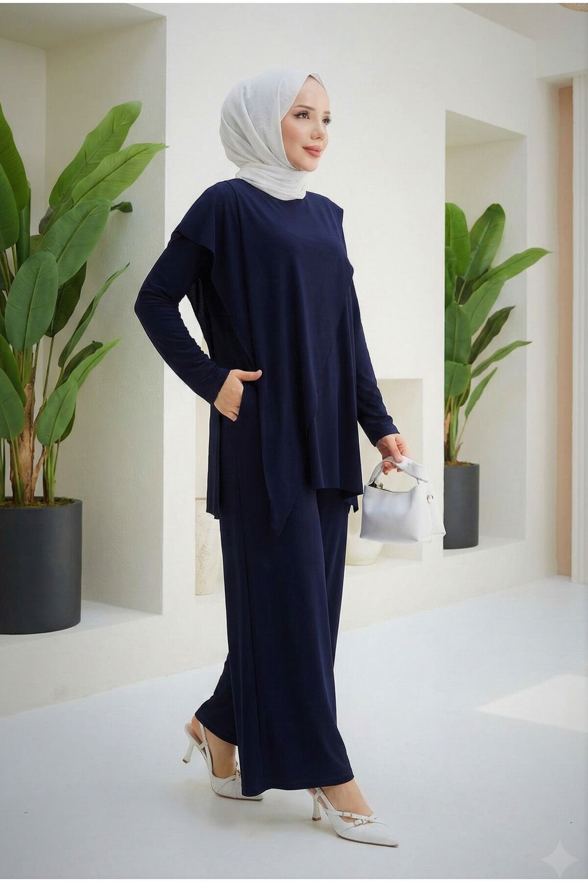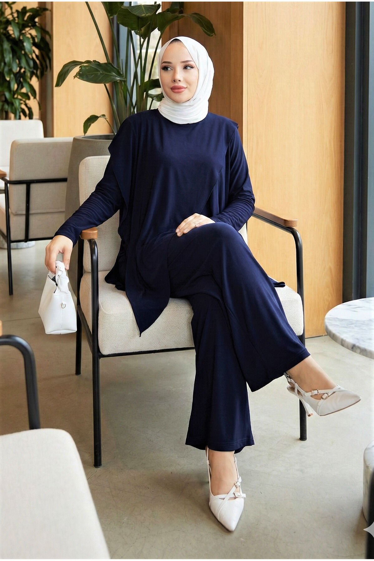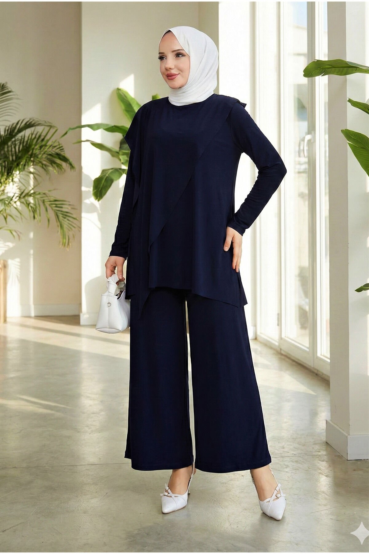 - Asimetrik kesimi ile modern ve şık bir görünüm sunar.; - Standart kol tasarımı, rahat hareket etme özgürlüğü sağlar.; - Kırışmaya dayanıklı kumaşı sayesinde gün boyu düzgün ve bakımlı kalır.; - Sandy dokuma tipi, hafif ve nefes alabilen yapısıyla konforlu bir kullanım sunar.; - Bisiklet yaka tasarımı ile sade ve zarif bir stil oluşturur.; - Bluzlu pantolonlu alt-üst takım olarak, günlük kullanım için idealdir.; - Tesettür giyim koleksiyonuna uygun olarak tasarlanmıştır.; - Lastikli bel ve bol paça kesimi sayesinde rahatlık ve şıklığı bir arada sunar.; - Düz deseniyle kolayca kombinlenebilir ve zamansız bir parça haline gelir.; - Örme kumaş tipi, esneklik ve dayanıklılık sağlar.; - Türkiye menşeli olup yerel üretim desteklenmektedir.; - Regular kalıp, vücut hatlarını saran ancak sıkmayan bir yapıya sahiptir.; - İnce yapısıyla hafif- Kırışmaya karşı dayanıklı yapısıyla pratik kullanım sunar.; - 30 derecede makinede veya elde tersten yıkanabilir, kolay bakım imkanı sağlar.; - Kapamasız tasarımı ile rahat hareket etme özgürlüğü verir.; - Bel kısmında lastik detayı bulunur, vücuda mükemmel uyum sağlar.; - Standart kol tipiyle günlük kullanım için idealdir; serin yaz günlerinde konfor sunar.; - Bisiklet yakası sayesinde modern ve şık bir görünüm kazandırır.; - Tesettür giyim koleksiyonuna özel olarak tasarlanmıştır; zarifliği ve rahatlığı bir arada sunar.; - Viskon karışımlı materyali cildinizle dost dokunuşlar sağlarken esneklik katmaktadır.; - Lastikli detayları sayesinde gün boyu rahatlıkla kullanabilirsiniz.; - Cool & comfort persona ile stil sahibi olmanız için idealdir; hem gündüz hem de gece kombinlerinizde yerini alabilir.; - Sürdürülebilirlik detayına sahip olmasıyla çevre dostu bir seçimdir.; - Kutusuz paket içeriğiyle ekstra ambalaj atıkları oluşmasını önlerken minimalist tasarım anlayışını destekler.; - Düz deseni sayesinde kolayca kombinlenebilir; farklı aksesuarlarla kişisel tarzınızı yansıtmanıza olanak tanır.; - Kemersiz oluşuyla minimalist estetiği benimseyenlere hitap ederken şıklığınızdan ödün vermezsiniz.; - Viskon likra karışımlı materyali esneklik sunarak hareket serbestliği sağlar.; - Cepsiz tasarım modern çizgiler taşıyan minimalist bir görünüm kazandırır.; - Yetişkin yaş grubuna yönelik olarak tasarlanmıştır; geniş beden skalasıyla herkes için uygundur.; - Regular silueti sayesinde vücut hatlarınıza uyumlu bir duruş sergilerken konforundan ödün vermez.; - Astarsız yapısıyla hafif ve ferah hissettiren ince yapıda üretilmiştir.; - Tunikli pantolonlu ikili takım olarak hem rahatlık hem de şıklığı aynı anda yaşamanız için idealdir.; - Gündüzden geceye geçişte kolayca adapte olabilen çok yönlülük sunar.; - Sandy dokuma tipi yumuşak dokusuyla teninizde nazikçe hissedilir.