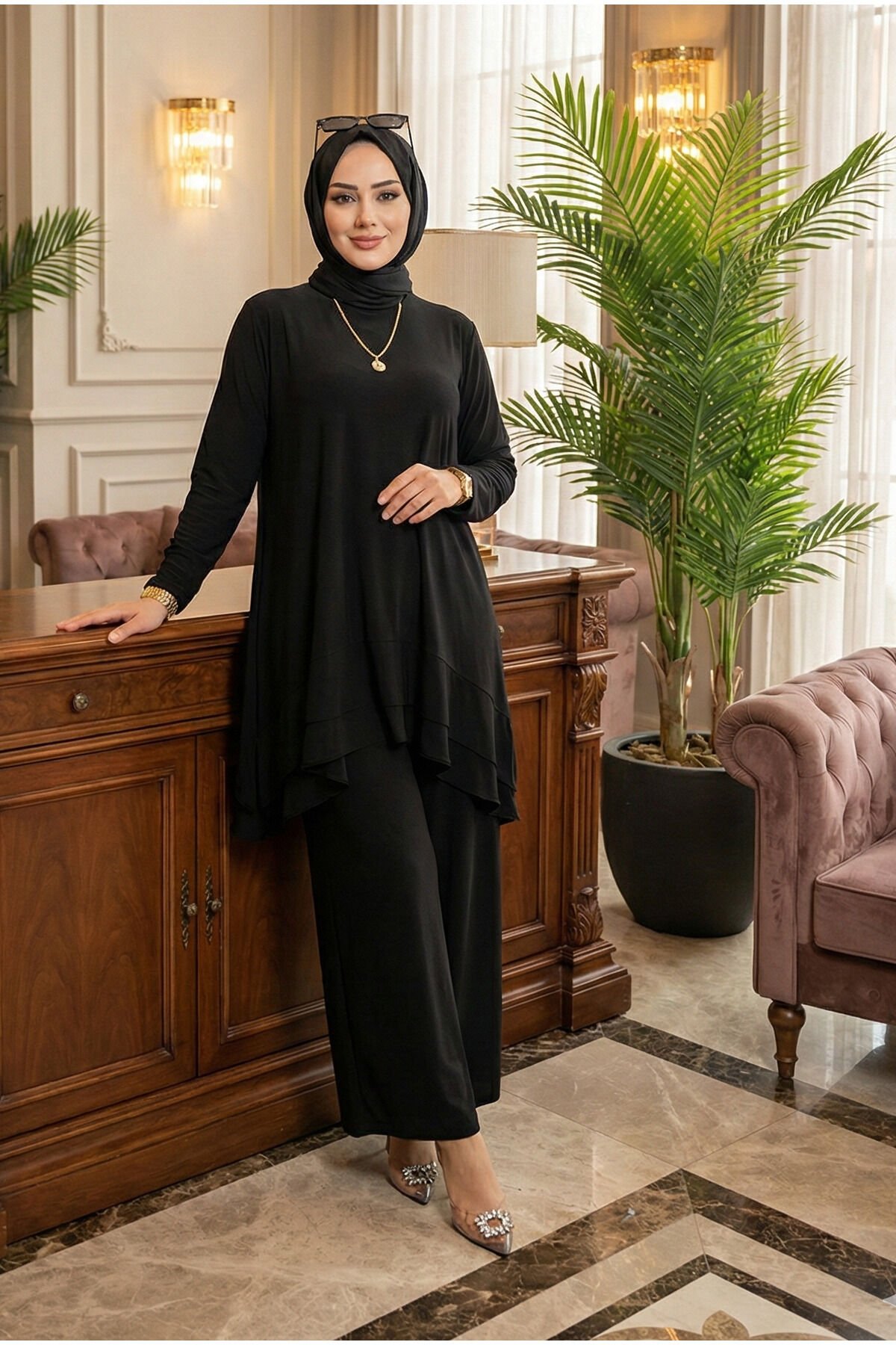 - Yaz aylarının vazgeçilmez parçası olan bu takım, ince sandy kumaşıyla hafif ve rahat bir kullanım sunar.; - Alt-üst takımı olarak tasarlanmış tunikli pantolonlu yapısı ile şıklığı ve konforu bir arada yaşatır.; - Yırtmaç detayları sayesinde hareket özgürlüğü sağlarken, düz deseniyle kolayca kombinlenebilir.; - Bol paça kesimiyle modern ve rahat bir siluet oluştururken, lastikli bel detayı konforlu bir oturuş sunar.; - Kırışmaya dayanıklı özelliği ile bakımı kolaydır ve uzun süreli kullanım için idealdir.; - Astarsız yapısıyla hafifliği ön planda tutarken, standart kol tipi günlük kullanım için uygundur.; - Kapamasız tasarımı sayesinde pratik giyim imkanı sağlar; kemer gerektirmeyen yapısıyla zamandan tasarruf eder.; - Tesettür giyim koleksiyonuna özel olarak tasarlanmış bu takım, casual ortamlarda rahatça tercih edilebilir.; - 2'li paketiyle hem ekonomik hem de stil sahibi bir seçenektir; her gardıropta yerini almayı hak eder.; - Regular kalıp ile vücut hatlarını saran ancak sıkmayan yapıda olup, her bedene uyum sağlar.;- Yaz aylarının vazgeçilmez parçası olan bu takım, ince sandy kumaşıyla hafif ve rahat bir kullanım sunar.; - Alt-üst takımı olarak tasarlanmış tunikli pantolonlu yapısı ile şıklığı ve konforu bir arada yaşatır.; - Yırtmaç detayları sayesinde hareket özgürlüğü sağlarken, düz deseniyle kolayca kombinlenebilir.; - Bol paça kesimiyle modern ve rahat bir siluet oluştururken, lastikli bel detayı konforlu bir oturuş sunar.; - Kırışmaya dayanıklı özelliği ile bakımı kolaydır ve uzun süreli kullanım için idealdir.; - Astarsız yapısıyla hafifliği ön planda tutarken, standart kol tipi günlük kullanım için uygundur.; - Kapamasız tasarımı sayesinde pratik giyim imkanı sağlar; kemer gerektirmeyen yapısıyla zamandan tasarruf eder.; - Tesettür giyim koleksiyonuna özel olarak tasarlanmış bu takım, casual ortamlarda rahatça tercih edilebilir.; - 2'li paketiyle hem ekonomik hem de stil sahibi bir seçenektir; her gardıropta yerini almayı hak eder.; - Regular kalıp ile vücut hatlarını saran ancak sıkmayan yapıda olup, her bedene uyum sağlar.;