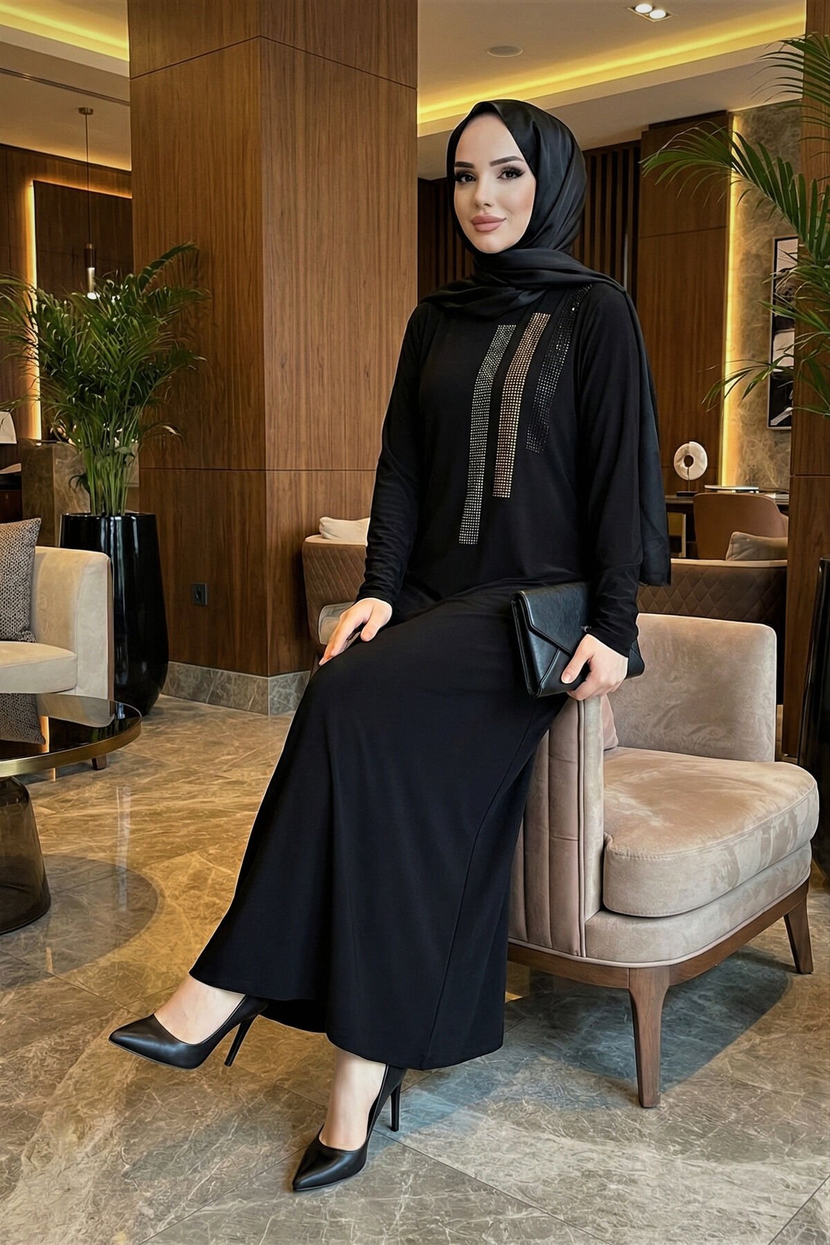 - Rahat kesimiyle büyük beden kadınlar için ideal bir tercih olan bu elbise, günlük kullanımda konfor ve şıklığı bir arada sunar.; - Viskon karışımlı kumaşı sayesinde yumuşak dokusuyla cildinize nazikçe dokunur ve gün boyu rahatlık sağlar.; - Bisiklet yaka tasarımı ile modern ve sade bir görünüm elde edilirken, düz deseniyle kolayca kombinlenebilir.; - Uzun boyu ve standart kol tipi ile tesettür giyim tarzına uygun zarif bir siluet oluşturur.; - Sandy dokuma tipi, hafif ve nefes alabilen yapısıyla yaz aylarında serinlik hissi verir.; - Siyah rengiyle zamansız bir şıklık sunan bu elbise, her ortama uyum sağlar.; - Astarsız yapısıyla hafif ve ferah bir kullanım deneyimi yaşatırken, taş baskı detayıyla sofistike bir dokunuş katılır.; - 30 derecede makina veya elde tersten yıkama önerisiyle uzun ömürlü kullanım imkanı sunar.; - Yerli üretim olan bu ürün, sürdürülebilirlik detaylarıyla çevre dostu bir tercih olarak öne çıkar.- Rahat kesimiyle büyük beden kadınlar için ideal bir tercih olan bu elbise, günlük kullanımda konfor ve şıklığı bir arada sunar.; - Viskon karışımlı kumaşı sayesinde yumuşak dokusuyla cildinize nazikçe dokunur ve gün boyu rahatlık sağlar.; - Bisiklet yaka tasarımı ile modern ve sade bir görünüm elde edilirken, düz deseniyle kolayca kombinlenebilir.; - Uzun boyu ve standart kol tipi ile tesettür giyim tarzına uygun zarif bir siluet oluşturur.; - Sandy dokuma tipi, hafif ve nefes alabilen yapısıyla yaz aylarında serinlik hissi verir.; - Siyah rengiyle zamansız bir şıklık sunan bu elbise, her ortama uyum sağlar.; - Astarsız yapısıyla hafif ve ferah bir kullanım deneyimi yaşatırken, taş baskı detayıyla sofistike bir dokunuş katılır.; - 30 derecede makina veya elde tersten yıkama önerisiyle uzun ömürlü kullanım imkanı sunar.; - Yerli üretim olan bu ürün, sürdürülebilirlik detaylarıyla çevre dostu bir tercih olarak öne çıkar.