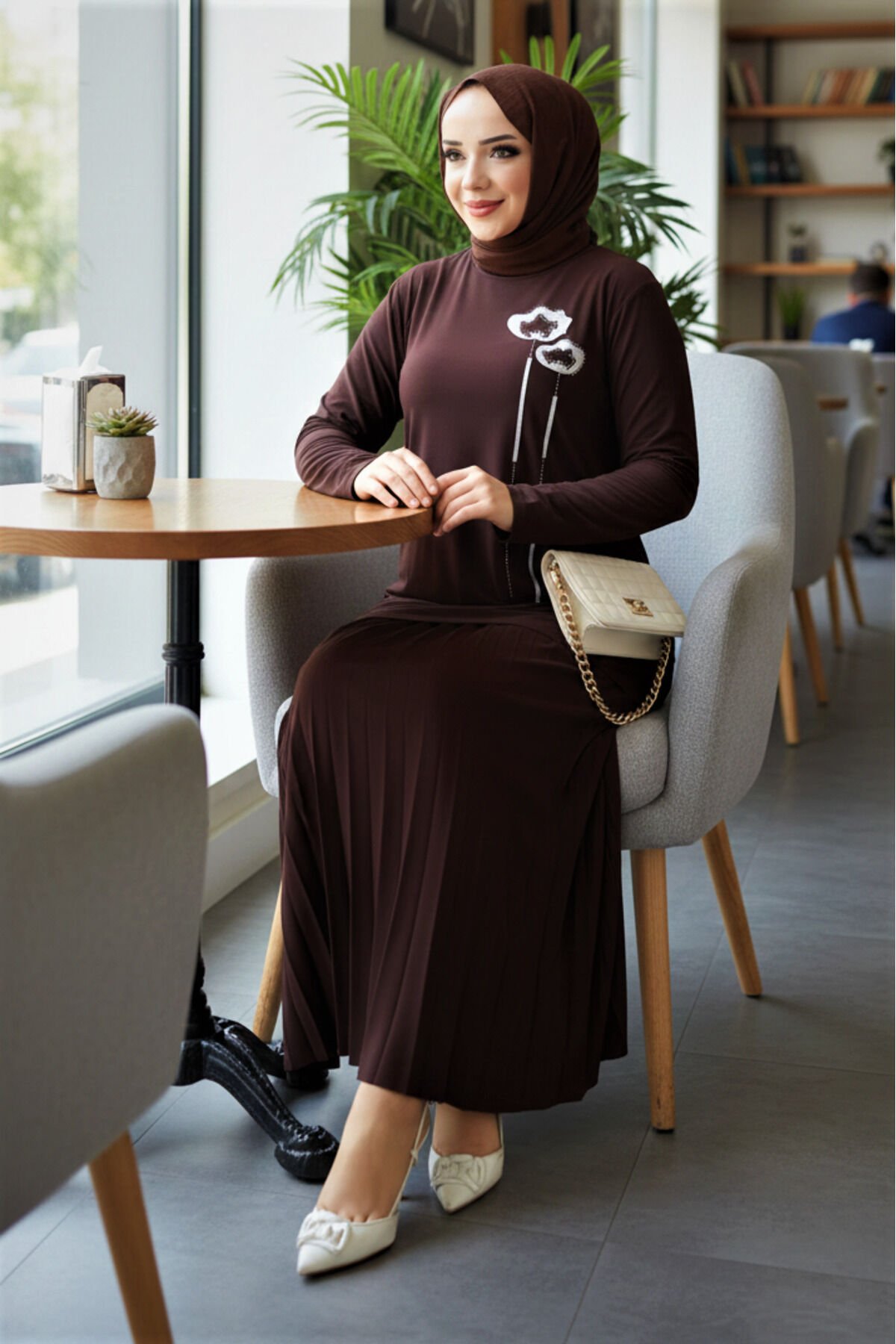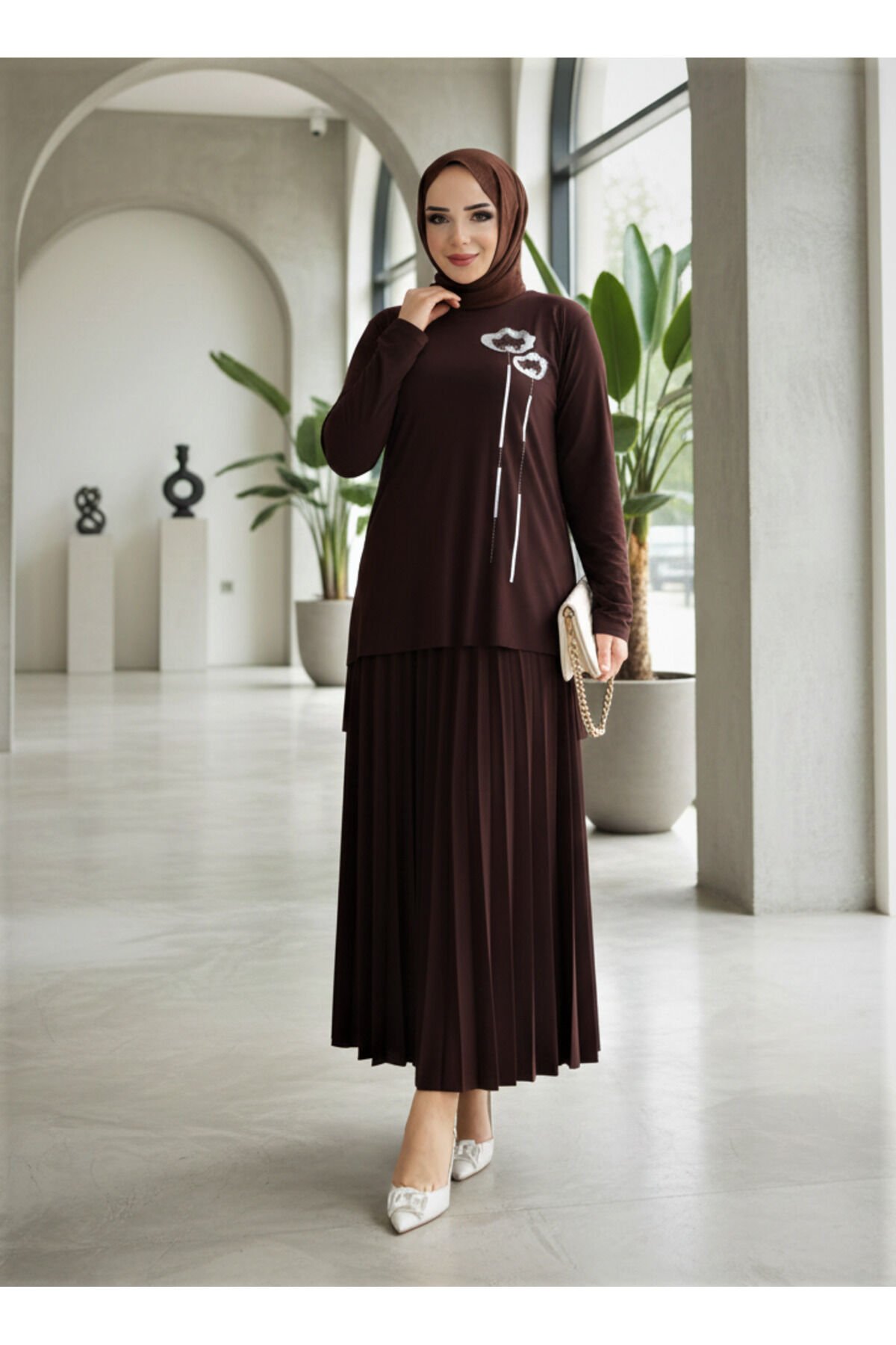 - Rahat kesimi ile büyük beden tercih edenler için ideal, uzun boy tasarımıyla şıklığı ve konforu bir arada sunar.; - Aplike detayları ile göz alıcı bir görünüm kazandırırken, astarsız yapısı sayesinde hafif ve ferah bir kullanım sağlar.; - Düz deseniyle kolayca kombinlenebilen bu takım, yaz ayları için mükemmel bir seçenektir.; - Yüksek bel tasarımı sayesinde vücut hatlarını zarifçe sararak feminen bir siluet oluşturur.; - Uzun kol boyu ile mevsimsel geçişlerde ideal koruma sunarken, cep detayı bulunmayan pratik bir kullanım vaat eder.; - Bluzlu etekli takım olarak tasarlanmış olup, hem şıklığı hem de rahatlığı aynı anda yakalamanızı sağlar.; - Orta kalınlığa sahip viskon karışımlı materyali sayesinde mevsim koşullarına uygun konfor sunar.; - Paçasız paça tipiyle modern ve zamansız bir tarza sahip olan bu takım, günlük kullanım için uygundur.; - Viskon likra karışımlı materyali esneklik kazandırarak gün boyu rahat hareket etmenizi sağlar.; - 30 derecede yıkama imkanına sahip olması bakımını kolaylaştırırken, kırışmaya dayanıklı özelliğiyle zamandan tasarruf etmenize yardımcı olur.; - Yetişkin yaş grubuna hitap eden bu ürün, casual ortamlarda rahatlıkla tercih edilebilir.; - Kutusuz ambalaj seçeneği ile minimalist bir yaklaşımla sunulur; böylece çevre dostu bir tercih yapmış olursunuz.; - Casual giyim koleksiyonuna ait olan bu takım, günlük kullanım için idealdir ve her ortamda stil sahibi görünmenizi sağlar.; - Regular silueti sayesinde farklı vücut tiplerine uyum göstererek geniş bir kullanıcı kitlesine hitap eder.; - Bisiklet yaka detayı modern çizgiler taşıyan bu takımın zarif duruşunu tamamlar.- Rahat kesimi ile günlük kullanıma uygun, yüksek bel tasarımı sayesinde konforlu bir oturuş sunar.; - Uzun boyu ve piliseli eteğiyle modern bir siluet çizerken, yaz aylarında serinlik sağlar.; - Astarsız yapısıyla hafif ve nefes alabilen bir yapıya sahiptir; böylece gün boyu rahat hissetmenizi garanti eder.; - Düz deseniyle sade ve şık görünümüyle her türlü aksesuarla kolayca kombinlenebilir.; - Viskon karışımlı materyali sayesinde esneklik sunarken, orta kalınlığı mevsimsel geçişlerde ideal konforu sağlar.; - Uzun kollu bluzu ile tamamlanan ikili takım, hem gündüz hem de gece kullanımına uygundur.; - Kemer veya kuşak detayı bulunmayan bu takım, minimalist tarzınızı ön plana çıkarırken şıklığınızdan ödün vermez.; - Cepsiz tasarımı pratiklik kazandırarak günlük aktivitelerinizde size eşlik eder.; - Paçasız paça tipi modern çizgilerle buluşarak trend bir görünüm sunar.; - 30 derecede makinede ya da elle tersten yıkama imkanıyla bakımı kolaydır; böylece zamandan tasarruf edersiniz.; - Yetişkin yaş grubuna hitap eden bu ürün, her bedene uygun regular kalıp seçeneğiyle geniş kullanıcı kitlesine hitap eder.; - Modamira tekstil tarafından zeytinburnu istanbul'da üretilen bu parça, kalite standartlarına uygun üretim süreciyle güvenilirlik taşır.; - Bisiklet yakası sayesinde rahatlıkla giyip çıkartabilirsiniz; ayrıca cool & comfort persona ile tarzınıza zarif bir dokunuş ekler.; - 2'li set halinde sunulan bu takım, gardrobunuzda temel parçalardan birine sahip olmanız için idealdir.; - Kapamasız yapısıyla pratik kullanım sağlarken kırışmaya dayanıklı özelliğiyle bakımı kolaydır.; - Sandy dokuma tipi sayesinde dayanıklılığı arttırılmıştır; uzun süreli kullanım için idealdir.; - Tesettür giyim koleksiyonuna özel olarak tasarlanmıştır; zarif detaylarıyla dikkat çekerken kahve renginin asaletini yansıtır.