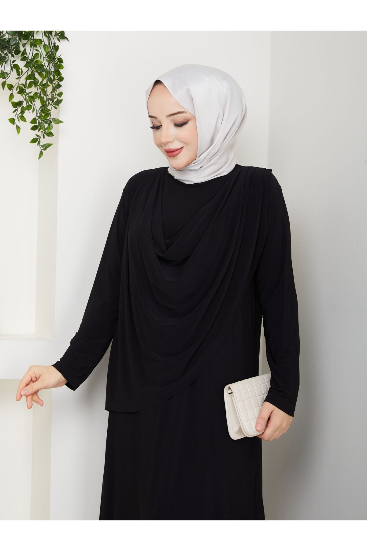 Kadın Sandy Lacivert Önü Degaje Detaylı Tesettür Elbise Siyah - 48